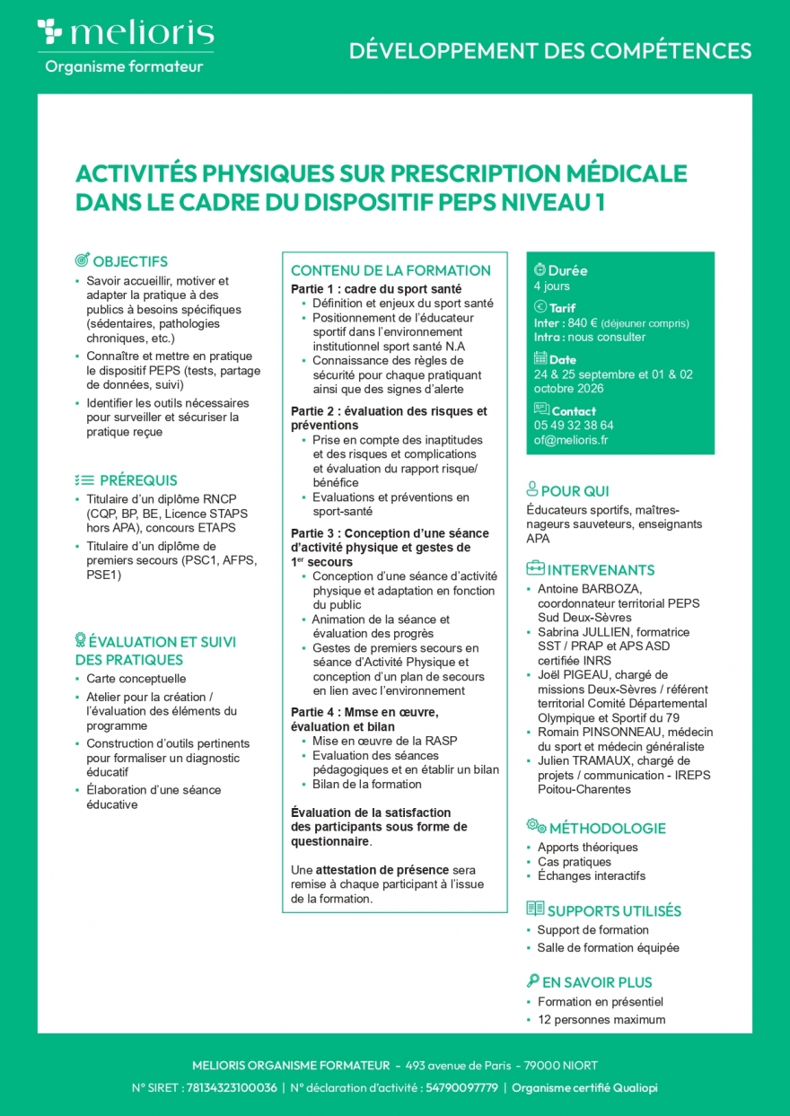 - Savoir accueillir, motiver et adapter la pratique à des publics à besoins spécifiques (sédentaires, pathologies, chroniques...)